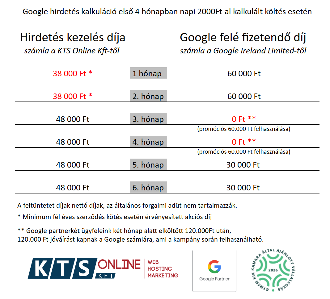A Google cégem fiók paraméterezés díja egyszeri 20.000Ft.